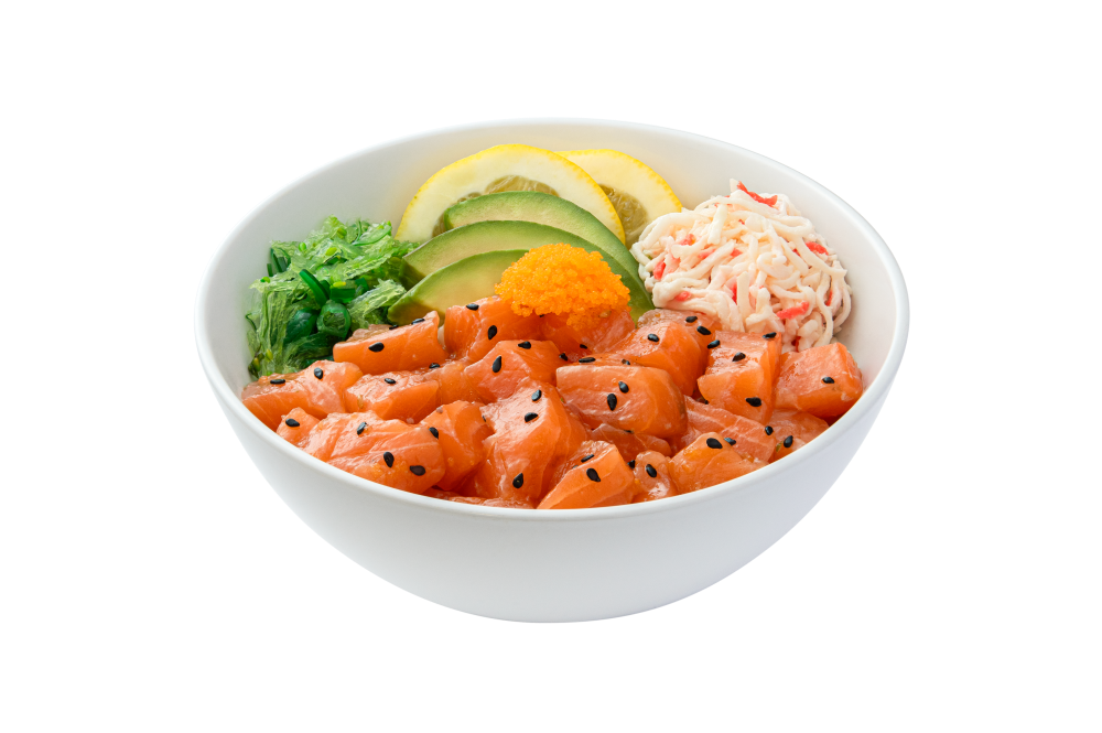 SUSHI WHITE RICE (WATER, WHITE RICE, SUGAR, DISTILLED VINEGAR, SALT, RICE VINEGAR, CITRIC ACID, BROWN SUGAR);ATLANTIC SALMON*; LETTUCE; IMITATION CRAB SALAD (IMITATION CRAB [SURIMI {POLLOCK AND/OR PACIFIC WHITING,SUGAR, SORBITOL, SODIUM TRIPOLYPHOSPHATE, TETRASODIUM PYROPHOSPHATE}, WATER, MODIFIED TAPIOCA STARCH,SUGAR, SWEET COOKING RICE WINE {RICE WINE, GLUTINOUS STARCH SYRUP, WATER, ETHYL ALCOHOL, SALT, DISODIUMSUCCINATE, DISODIUM GUANYLATE & DISODIUM INOSINATE}, CONTAINS LESS THAN 2% OF SALT, SORBITOL, TAPIOCA STARCH,POTATO STARCH, SOYBEAN OIL, ARTIFICIAL CRAB FLAVOR, CRAB EXTRACT POWDER, GLYCINE, DEXTRIN, DISODIUM SUCCINATE,HYDROLYZED SOY PROTEIN, DL-ALANINE, DISODIUM INOSINATE & DISODIUM GUANYLATE, CONCENTRATED CRAB EXTRACT,CRAB FLAVOR, XANTHAN GUM, TITANIUM DIOXIDE {COLOR}, COCHINEAL EXTRACT, PAPRIKA EXTRACT], MAYONNAISE[SOYBEAN OIL, WATER, WHOLE EGGS AND EGG YOLKS, DISTILLED VINEGAR, SALT, SUGAR, LEMON JUICE CONCENTRATE,CALCIUM DISODIUM EDTA USED TO PROTECT QUALITY, NATURAL FLAVORS]); POKE SAUCE (SESAME OIL, WATER, CANOLA OIL,SUGAR, GARLIC PUREE [GARLIC, WATER], SALT, SOY SAUCE [WATER, WHEAT, SOYBEAN, SALT], XANTHAN GUM, KELP EXTRACTPOWDER [MALTODEXTRIN, KOMBU EXTRACT, SALT], YEAST EXTRACT); AVOCADO (AVOCADO, LIME JUICE, SALT); SEASONEDSEAWEED (SEAWEED, AGAR, SUGAR, WATER, SOY SAUCE [WATER, SOYBEAN, WHEAT, SALT, SUGAR, ALCOHOL], MIRIN[GLUTINOUS RICE, RICE, FRUCTOSE, VINEGAR, SALT], RICE VINEGAR, SESAME SEEDS, BLACK FUNGUS, CHILI PEPPER, SESAMEOIL, SALT, SORBITOL POWDER, SKIPJACK TUNA EXTRACT, KELP, CALCIUM LACTATE, BLUE 1, YELLOW 5, ROCK SUGAR);MASAGO* (CAPELIN ROE, WATER, RICE VINEGAR, SWEET COOKING RICE WINE [GLUTINOUS RICE, RICE, FRUCTOSE, VINEGAR,SALT], RICE WINE, SALT, SORBITOL POWDER, YELLOW 5, YELLOW 6); SESAME SEEDS; LEMON;