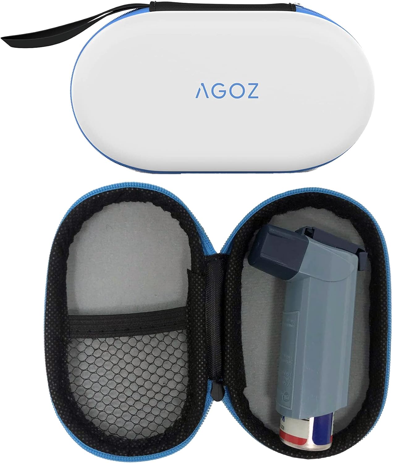 AGOZ Asthma Inhaler Medicine Travel Bag Case for Children and Adults - Protective Medical Pouch Holder Cover with Zipper Closure and Wrist Strap (White)