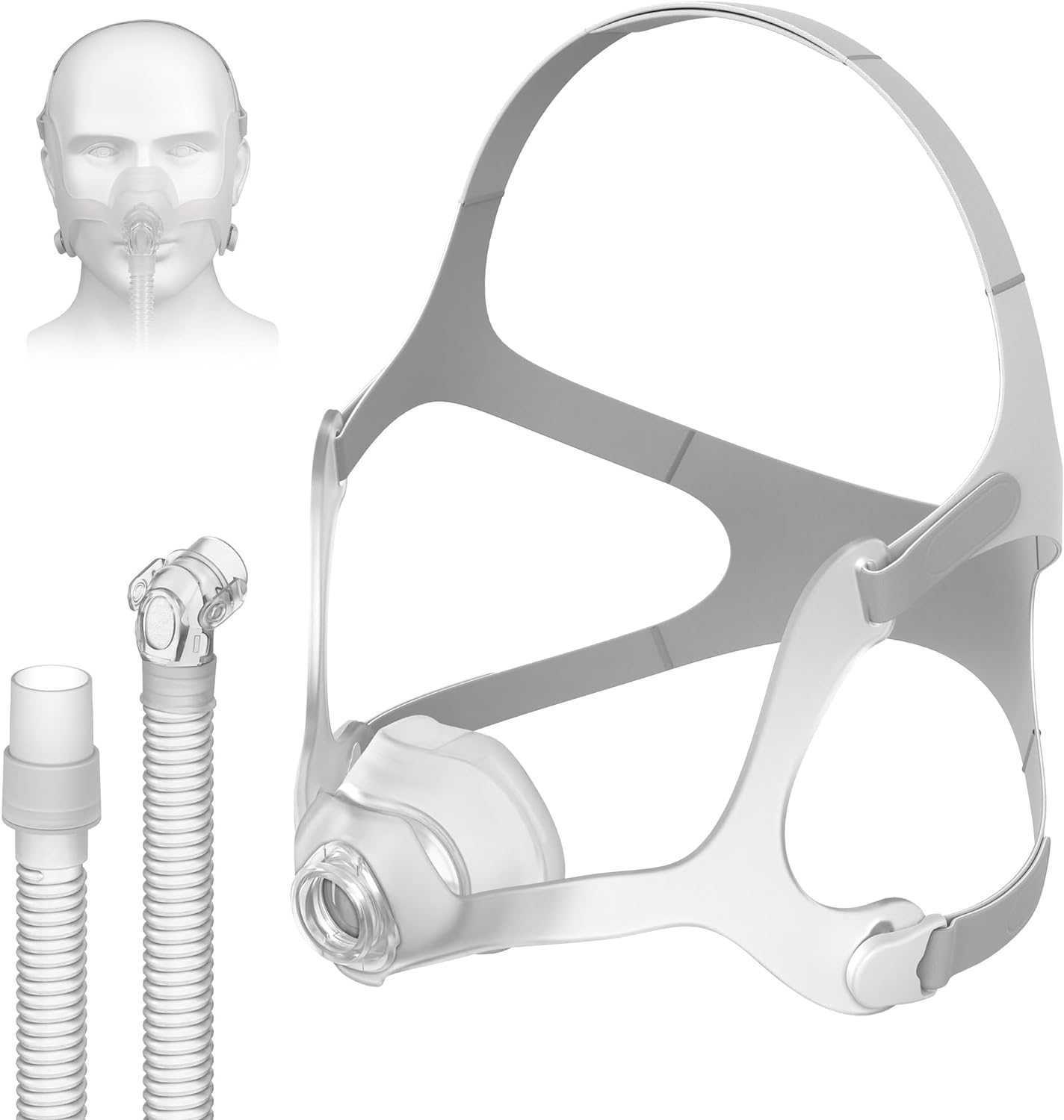 CPAP Mask, Universal Full Face CPAP Masks Replacement Set, Soft Silicone CPAP Full Cover Assembly Kit, TMS Comfort Series Nasal CPAP MASK with Headgear, Elbow and Cushion, S Size