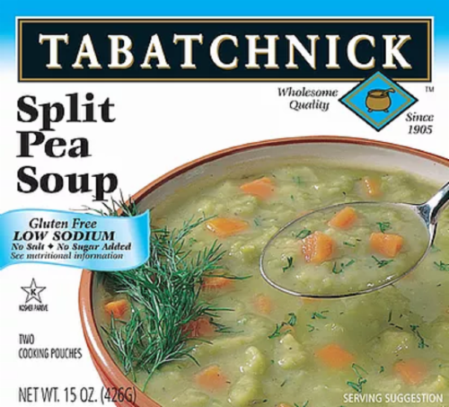 Total Fat 0 g 0%,Saturated Fat 0 g 0%,Trans Fat 0 g,Cholesterol 0 mg 0%,Sodium 670 mg 28%,Total Carbohydrate 19 g 6%,Dietary Fiber 6 g 24%,Sugars 4 g,Protein 7 g,Vitamin A 15%,Vitamin C 6%,Calcium 4%,Iron 8%,INGREDIENTS (VEGAN):,Filtered Water, Organic Green Split Peas, Organic Onions, Organic Celery, Organic Carrots, Sea Salt, Organic Basil, Organic Garlic, Spices*, Organic Black Pepper.,*100% pure herbs & spices (no hidden ingredients).,Heat and serve. Please do not