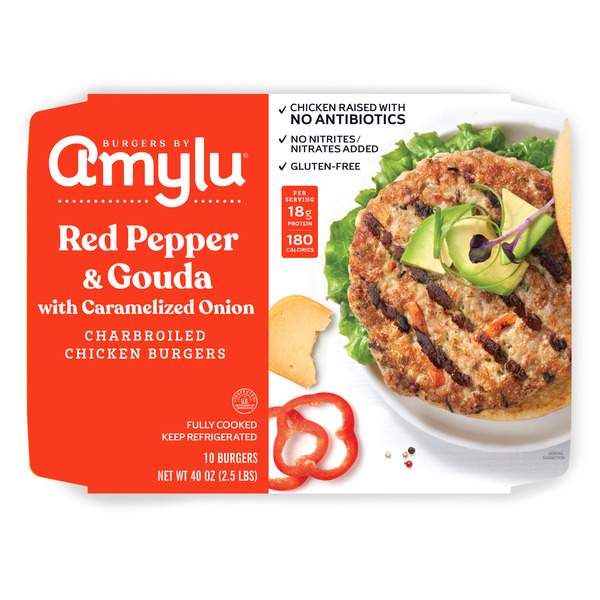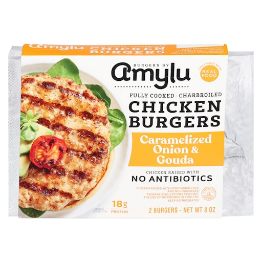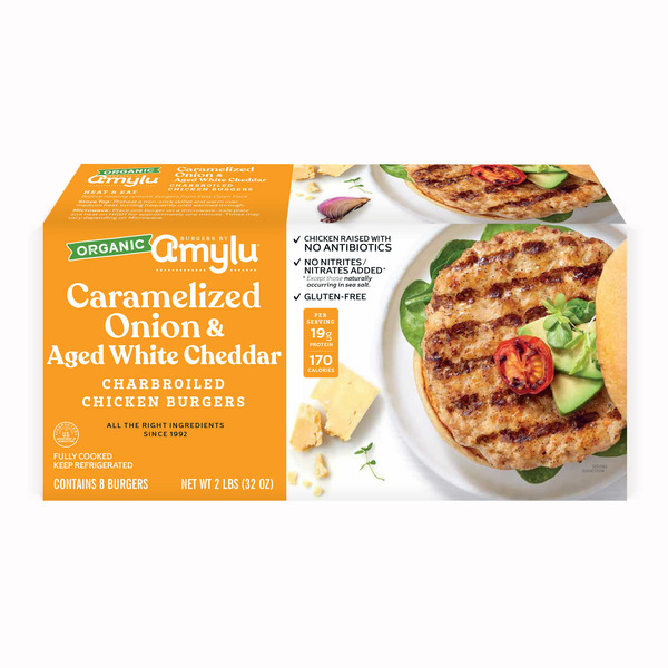 Amylu Organic Chicken Burger With Caramelized Onion And Aged White Cheddar, 8 Burgers