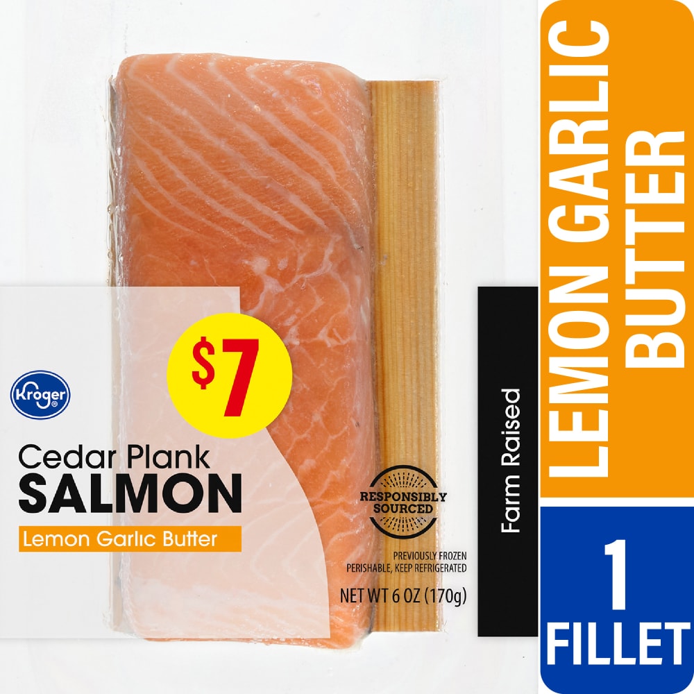 Kroger® Farm Raised Atlantic Salmon Portions Cedar Plank Lemon Garlic Butter