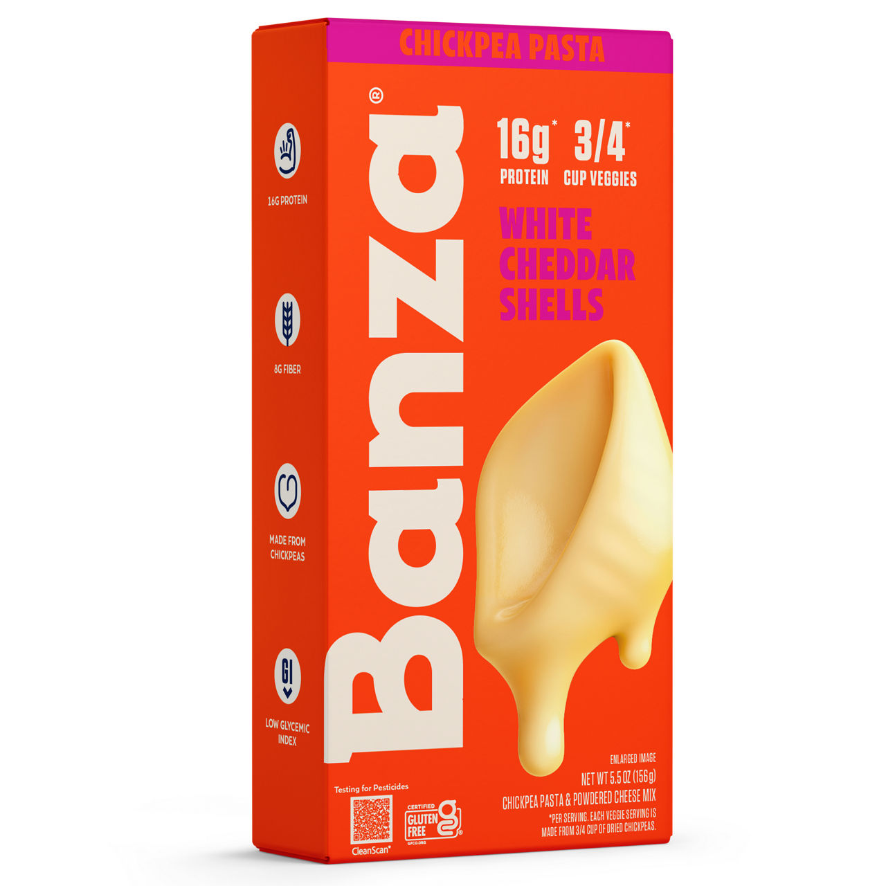 Chickpea Pasta: Chickpeas, Pea Starch, Tapioca, Xanthan Gum. Cheese: Cheddar Cheese (Cultured Pasteurized Milk, Salt, Enzymes), Skim Milk, Cream, Water, Whey, Canola Oil, Sodium Phosphate, Salt, Lactic Acid, Natural Flavors, Sodium Alginate, Organic Fruit Juice and Organic Annatto Extract (color), Xanthan Gum.Contains: Milk.