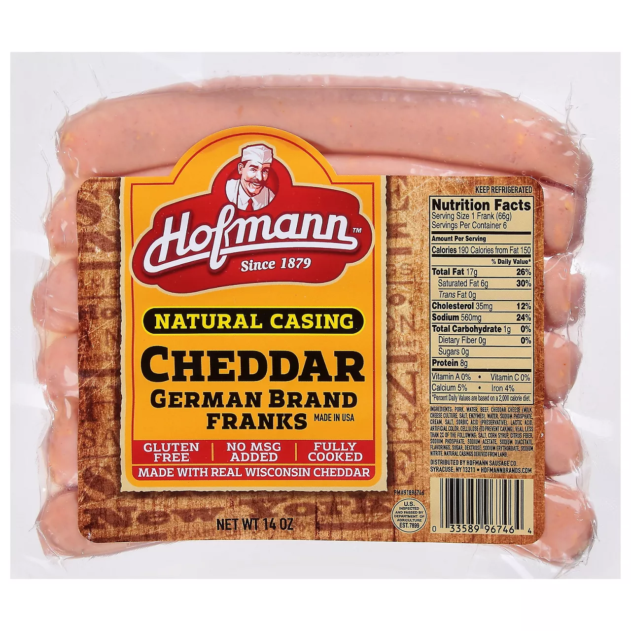 Mechanically Separated Chicken, Water, Pasteurized Process Cheddar Cheese (Cheddar Cheese (Cultured Pasteurized Milk, Salt, Enzymes), Water, Cream, Sodium Phosphate, Salt, Sorbic Acid (As A Preservative), Artificial Coloring), Pork, Dextrose, Modified Corn Starch, Contains 2% Or Less Of The Following: Salt, Beef, Corn Syrup, Flavorings, Sodium Phosphates, Potassium Lactate, Potassium Acetate, Sodium Diacetate, Sodium Erythorbate, Oleoresin Of Paprika, Sodium Nitrite, Smoke Flavoring.