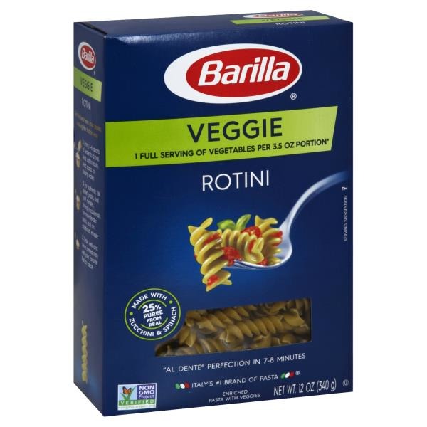 Semolina (Wheat), Durum Wheat Flour, Zucchini Puree (Zucchini, Lemon Juice Concentrate), Spinach Puree. Vitamins/Minerals: Vitamin B3 (Niacin), Iron (Ferrous Sulfate), Vitamin B1 (Thiamine Mononitrate), Vitamin B2 (Riboflavin), Folic Acid.