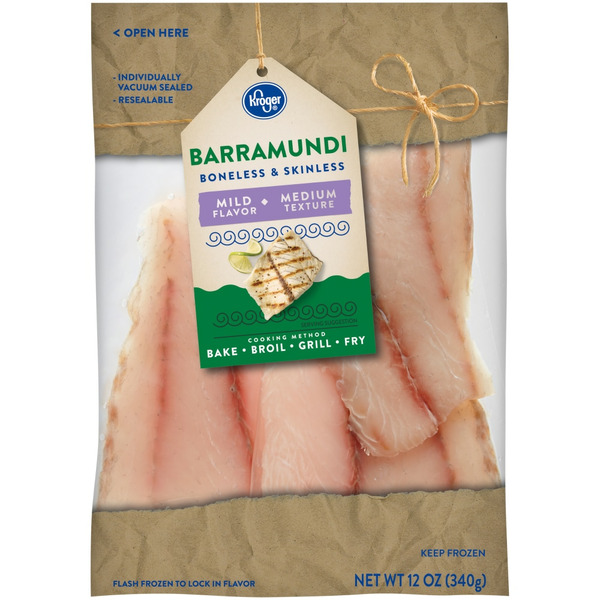 Barramundi, cane sugar, corn starch, yeast extract, garlic powder, unsalted butter (contains milk), spices, sunflower oil, contains less than 2% of the following: tomato, red bell pepper, chive), natural flavor, sea salt, sweet cream solids, maltodextrin, spices, citric acid, natural turmeric extract.