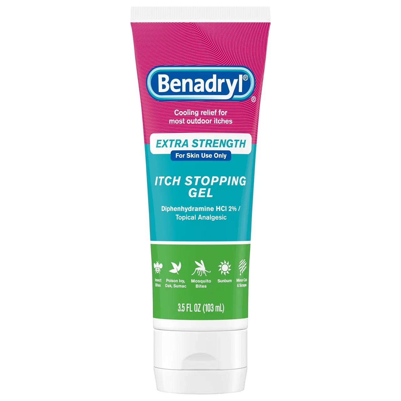 Benadryl Extra Strength Itch Relief Stick provides fast, cooling relief from skin pain and itching. Made with 2% diphenhydramine HCI topical analgesic and 0.1% zinc acetate skin protectant, it begins to work on contact to temporarily relieve the pain and itching associated with most outdoor itches including insect bites, sunburn, scrapes, and minor skin irritations, burns, and cuts. This topical analgesic soothes rashes caused by poison ivy, poison oak, and poison sumac. The easy-to-use bug bite...
