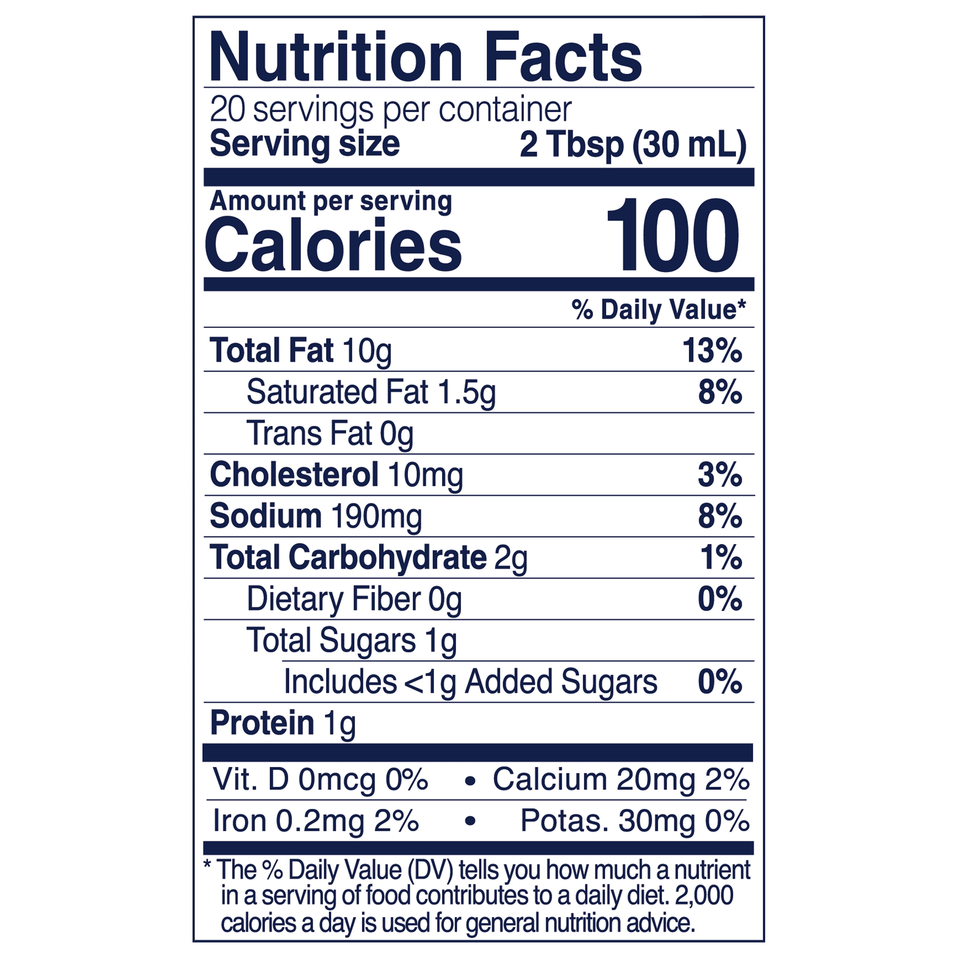 Water, Distilled Vinegar, Soybean Oil, Salt, Maltodextrin, Parmesan Cheese (Pasteurized Part Skim Milk, Cheese Cultures, Salt, Enzymes), Romano Cheese (Pasteurized Part Skim Milk, Salt, Cheese Cultures, Enzymes), Contains Less than 2% of Sugar, Food Starch-Modified, Onion (Dehydrated), Cheese (Dehydrated) (Cultured Pasteurized Milk, Salt, Enzymes), Granular and Provolone Cheese (Pasteurized Milk, Cheese Cultures, Salt, Enzymes), Malted Barley Extract and Corn Grits, Spices, Garlic (Dehydrated), Natural Flavors (Includes Soybean), Buttermilk Solids, Sorbic Acid, Sodium Benzoate (a Preservative), Carrot (Dehydrated), Pectin, Lactic Acid, Xanthan Gum, Monosodium Glutamate, Milk Solids, Disodium Phosphate, Paprika, Disodium Inosinate and Disodium Guanylate, Whey, Calcium Disodium EDTA Added to Protect Flavor.