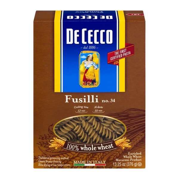 De Cecco 100% Whole Wheat Fusilli No.34 Pasta
