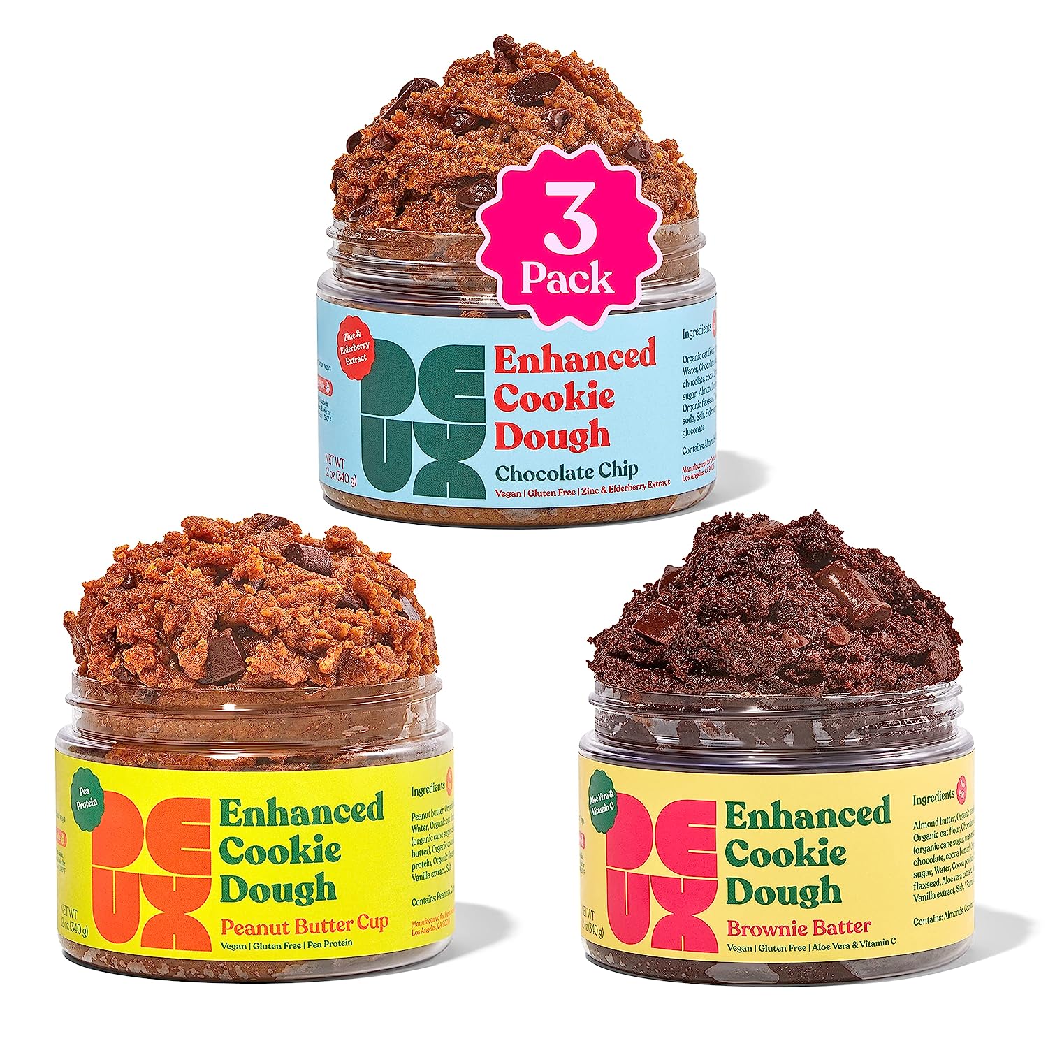 DEUX Vegan Cookie Dough - Gluten Free Cookies, Healthy Cookies, Superfood Desserts, Edible Cookie Dough, Ready to Eat, Vegan Cookies, PB Chocolate Chip, Chocolate Chip, Brownie Batter