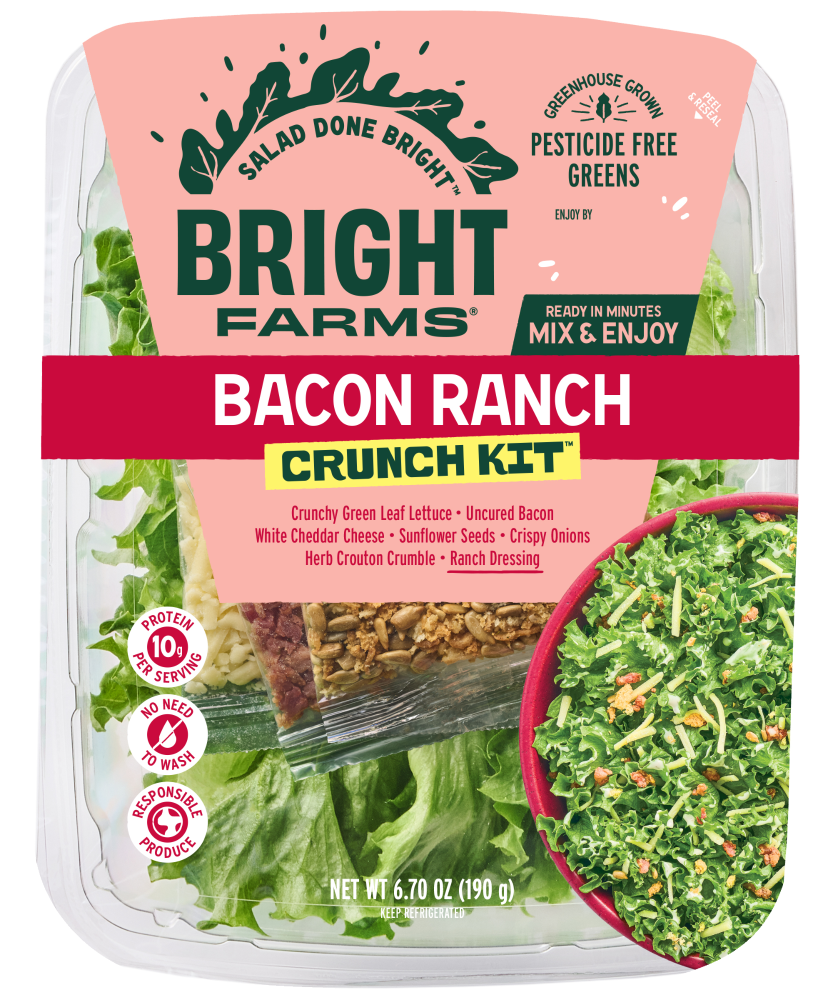 Salad, Chicken BLT Crisp iceberg lettuce, white meat chicken, bacon, and grape tomatoes. 10g protein. 260 calories. Good source of protein. Contains a bioengineered food ingredient. Salad includes fork. Inspected for wholesomeness by U.S. Department of Agriculture. www.readypac.com. Follow us! Facebook. Instagram. (at)Readypacfoods. Our bowls are 100% recycle-ready.