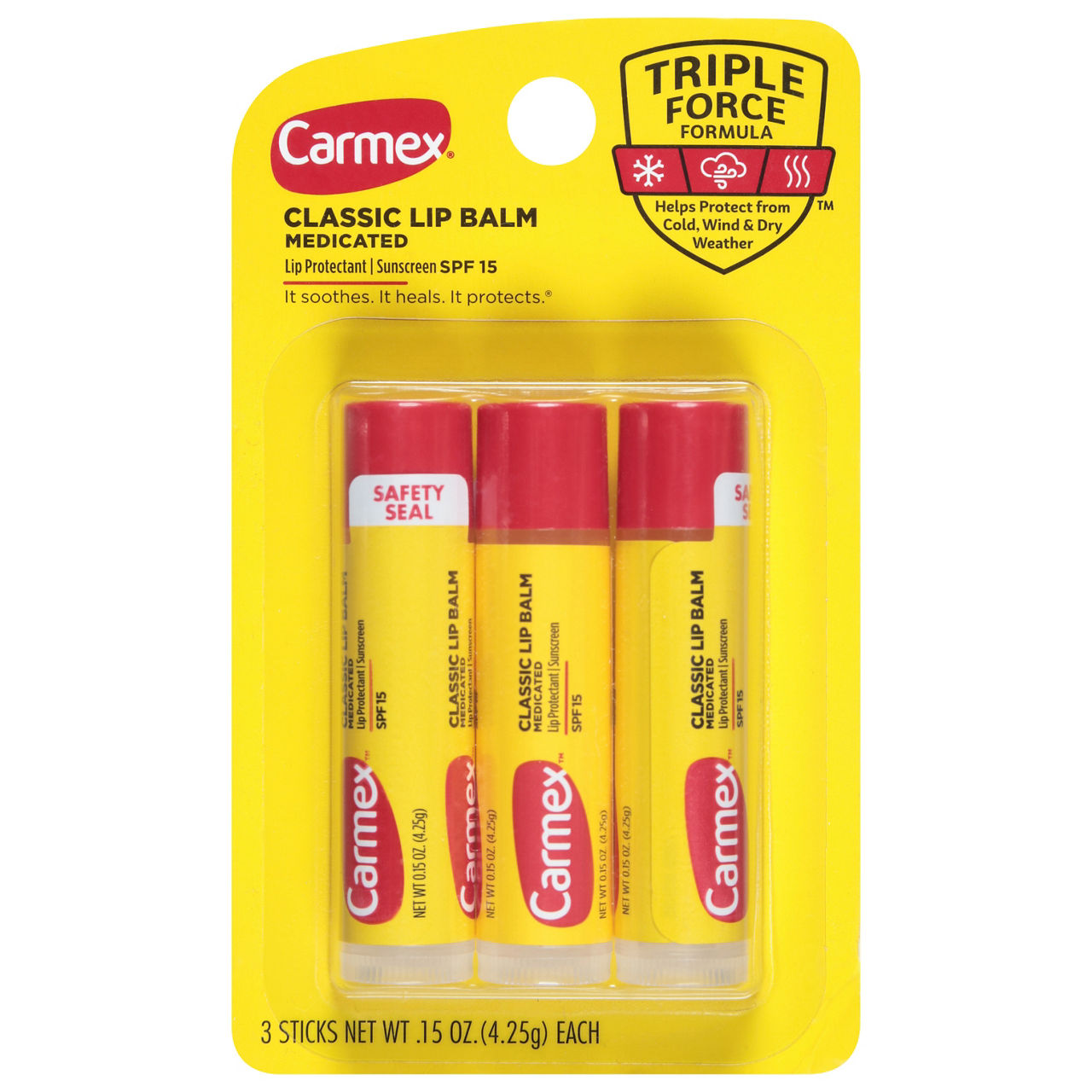 (3 Pack) Carmex Classic Lip Balm Medicated Sunscreen, SPF 15, .15 Ounce