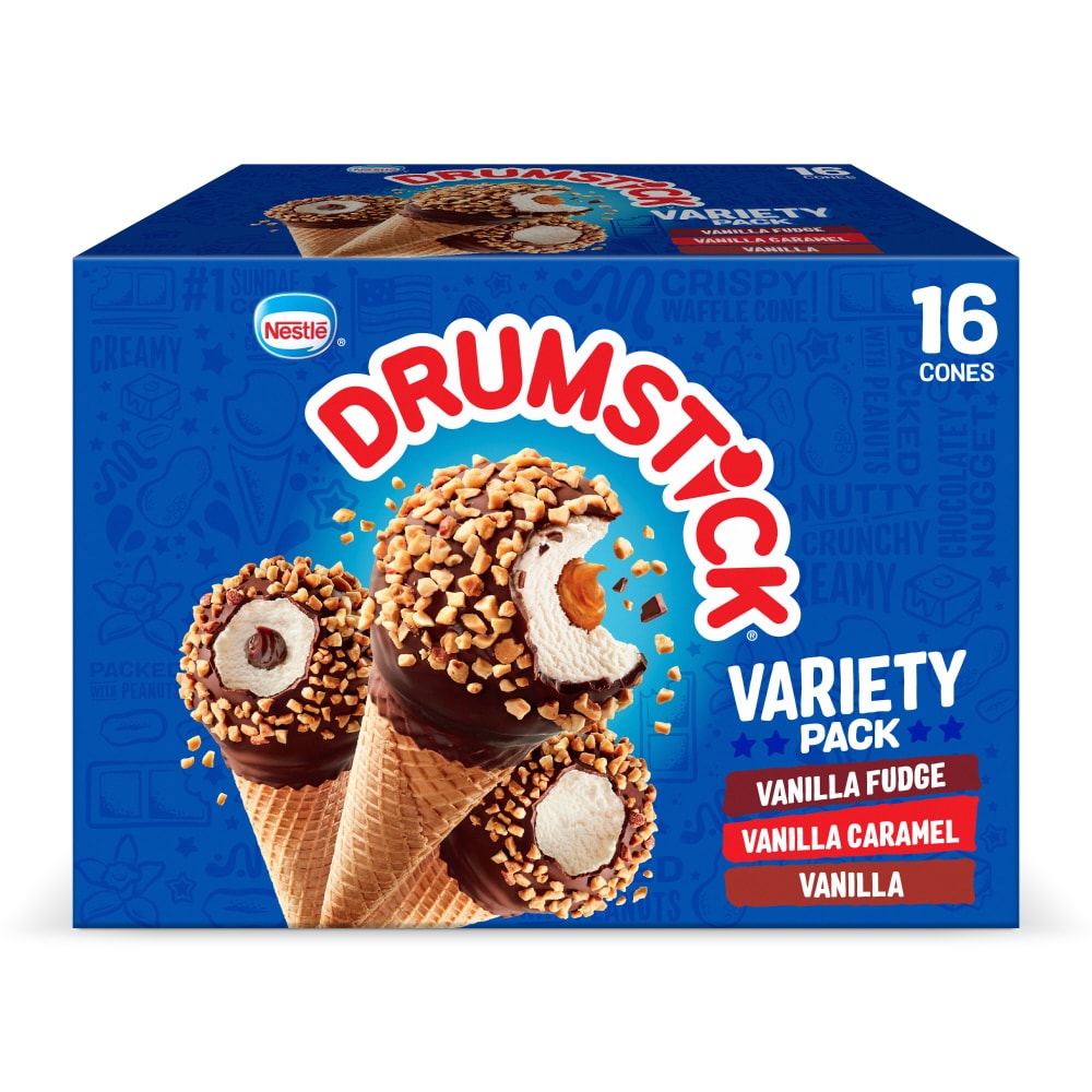 Reduced fat ice cream (milk, cream, sugar, nonfat milk, whey, corn syrup, buttermilk, contains 1% or less of natural and artificial flavors, mono & diglycerides, carob bean gum, cellulose gum, carrageenan, vitamin a palmitate). Cone [bleached wheat flour, sugar, molasses, vegetable shortening (partially hydrogenated soybean and/or cottonseed oils), salt, soy lecithin, caramel color], chocolate flavored coatings (coconut oil, sugar, cocoa, chocolate liquor, whey, whole milk powder, cocoa butter, soybean oil, partially hydrogenated coconut oil, cocoa processed with alkali, soy lecithin, salt, vanillin).