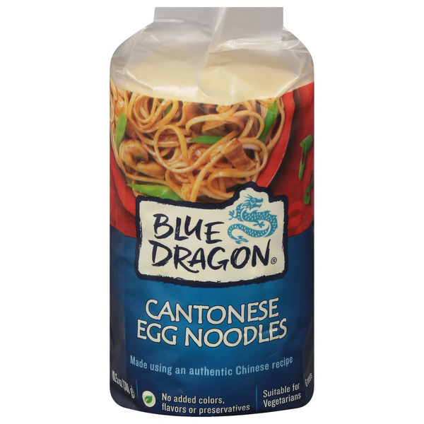 Made using an authentic Chinese recipe. No added colors, flavors or preservatives. Suitable for vegetarians. 6 nests. Blue Dragon Egg Noodles are made using a classic Chinese recipe. They are dried in individual portions for ease of use. bluedragon.com. Facebook. For recipes and enquires visit bluedragon.com. Produced in China.