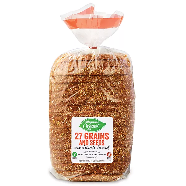 WHOLE WHEAT FLOUR*, WATER, WHEAT GLUTEN*, CANE SUGAR*, FLAXSEED*, OATS*, RYE SOURDOUGH (WATER, FERMENTED RYE FLOUR*), YEAST, SUNFLOWER SEEDS*, SOYBEAN OIL*, SEA SALT, BROWN SUGAR*, MILLET*, CULTURED WHEAT FLOUR*, BLACK AND WHITE SESAME SEEDS*, PUMPKIN SEEDS*, CRACKED WHEAT*, MOLASSES*, GRAIN VINEGAR*, NATURAL FLAVOR*, RYE FLOUR*, FLAXMEAL*, BLACK CHIA SEEDS*, KAMUT (KHORASAN WHEAT)*, KANIWA SEEDS*, TEFF*, CITRIC ACID, BROWN RICE*, BUCKWHEAT FLOUR*, SPELT FLOUR*, AMARANTH*, BARLEY*, BLUE CORNMEAL*, TRITICALE*, SALT, SORGHUM FLOUR*, QUINOA*.