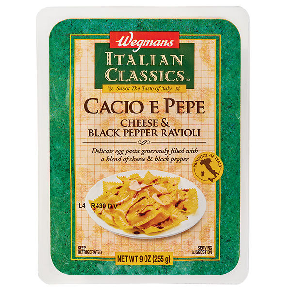 FILLING: RICOTTA CHEESE (WHEY, MILK, CREAM, VINEGAR, SALT), WHEAT FLOUR, PARMESAN CHEESE (CULTURED MILK, SALT, ENZYMES), WATER, ROMANO CHEESE MADE FROM COW'S MILK (CULTURED MILK, SALT, ENZYMES), CREAM, CANOLA OIL, SALT, SKIM MILK, SPICE, ROASTED GARLIC, GRANA PADANO CHEESE (CULTURED PART SKIMMED COW'S MILK, SALT, ENZYMES, EGG WHITE LYSOZYME), YEAST, CREAM POWDER, SUGAR, SUNFLOWER OIL, NATURAL FLAVOR, CARRAGEENAN. DOUGH: GROUND DURUM WHEAT, EGGS, WATER, BLACK PEPPER.