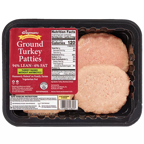Wegmans 94% Lean Ground Turkey Patties, Raised without Antibiotics, 4 Pack