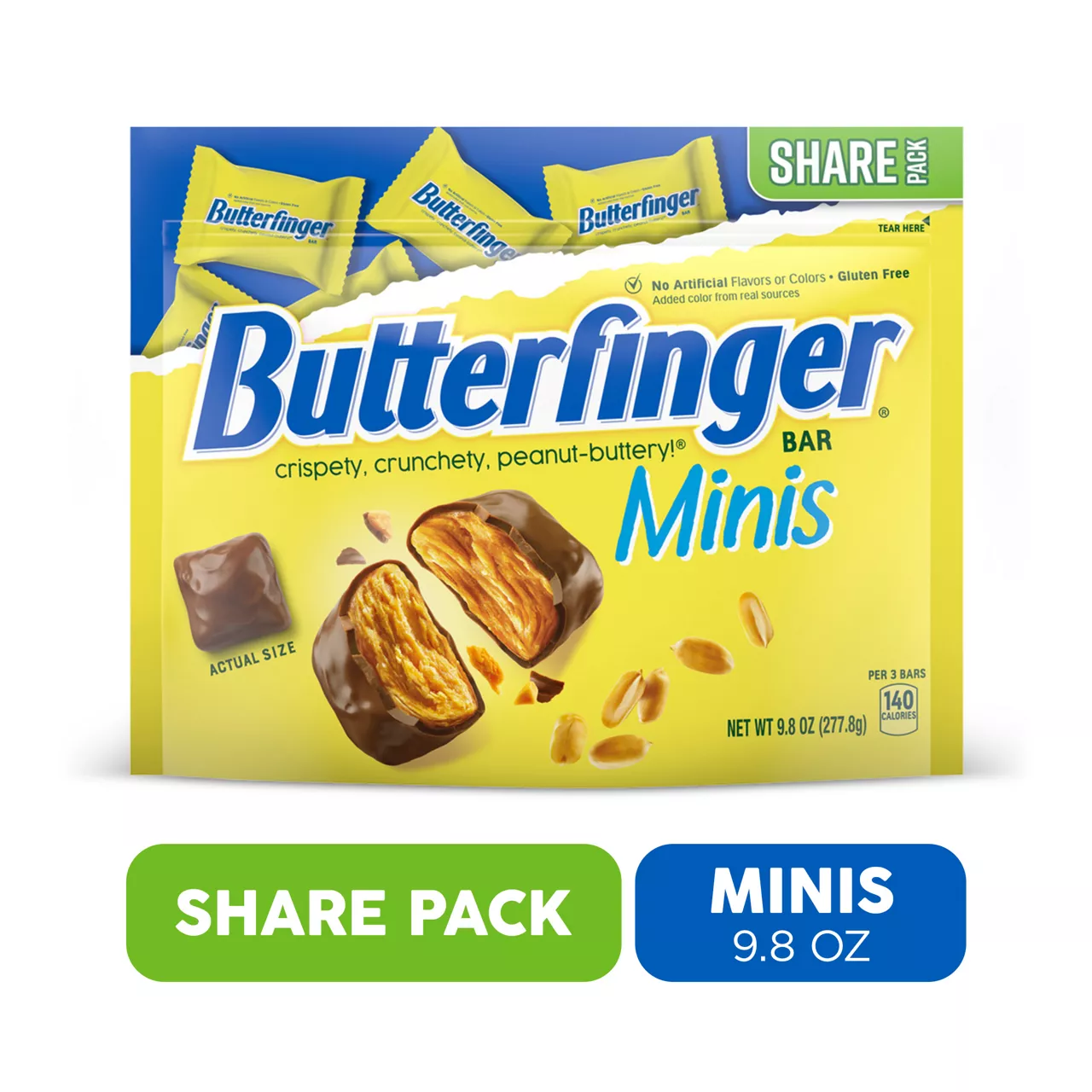 It's time to get your treat on with Butterfinger Fun Size candy bars in a shareable bag. These perfectly fun sized, peanut-buttery, chocolatey bars are small in size but big on taste. Packed with the crispety, crunchety, peanut-buttery taste everyone knows and loves, these individually wrapped candy treats are easy to snack on and enjoy. The shareable pack lets you take these delicious peanut-buttery, chocolatey bars anywhere and share with anyone. They're great for the home or office candy bowl,...