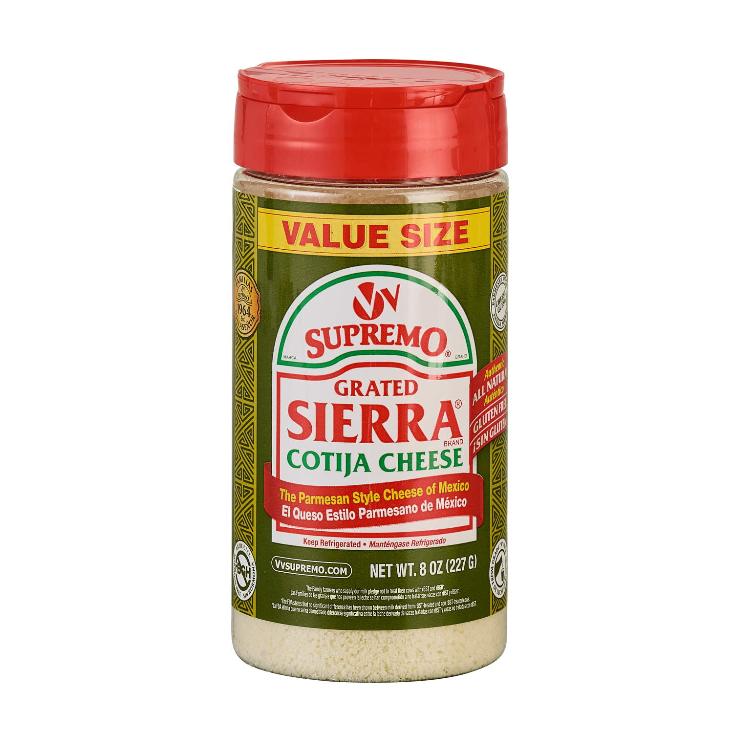 Create authentic Mexican dishes with the Cacique Cotija Cheese, 12 oz. It has a strong, salty flavor and can be used as a topping or mixed into sauces. This Cacique cheese was named after the town of Cotija, Michoacan where it originated. It rates as one of Mexico's most recognized cheeses that will help you to give a more authentic Mexican flavor to your Mexican food. This part-skim milk cheese has a dry and granular texture and resembles the flavor of parmesan or feta, which allows you to use it...