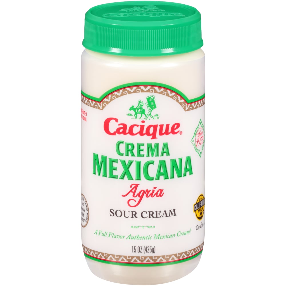 Cacique Crema Salvadorena Sour Cream, 15 oz Jar (Refrigerated) A thick and rich milk flavor, with a slightly sweet tang. Perfect with every traditional Central American dish like pupusas, beans, fried plantains, empanadas tacos and more. Adds a deliciously unique flavor to nachos, tacos, enchiladas, baked potatoes and much more! Made with milk from cows not treated with rBST. (No significant difference has been shown between milk derived from rBST treated cows It's a perfect topping on spicy dishes or use as a base for cream sauces Grade A Cream & Real California Milk A refrigerated product 2 tbsp serving size Un sabor a leche espeso y rico, con un sabor ligeramente dulce. Es un complemento perfecto para platos picantes o se utiliza como base para salsas cremosas.