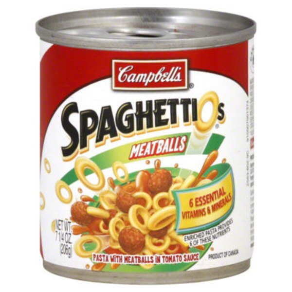 Ingredients: Water, Tomato Puree (Water, Tomato Paste), Meatballs Made With Pork, Chicken And Beef (Pork, Chicken, Mechanically Separated Chicken, Water, Beef, Bread Crumbs [Enriched Wheat Flour (Wheat Flour, Niacin, Ferrous Sulfate, Thiamine Mononitrate, Riboflavin, Folic Acid), Dextrose, Salt, Yeast, Soybean Oil], Soy Protein Concentrate, Salt, Dehydrated Onions, Dehydrated Garlic, Flavoring) , Enriched Pasta (Wheat Flour, Niacin, Ferrous Sulfate, Thiamine Mononitrate, Riboflavin, Folic Acid), High Fructose Corn Syrup, Contains Less Than 2% Of: Salt, Enzyme Modified Cheddar Cheese (Cheddar Cheese [Cultured Milk, Salt, Enzymes, Calcium Chloride], Water, Disodium Phosphate, Enzymes), Citric Acid, Enzyme Modified Butter, Reconstituted Skim Milk, Flavoring, Onion Extract.