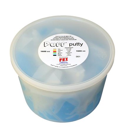 Puff LiTE? has a light and airy feel vs. traditional CanDo® Theraputty®. Available in 6 resistance levels. Puff LiTE? is available in the Preferred? color sequence. Each color-coded putty has a different consistency ranging from xx-soft for strengthening the weakest grasp to xx-firm for developing a stronger grip. The putty material is gluten, casein and latex free. Exercise Putty - firm - blue - 1600cc