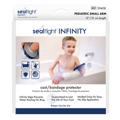The EZ Stretch Arm Cast Protector was designed to easily stretch over the cast and then self-seal tightly around arm without tape or straps. This cast protector is made from durable, reusable and latex free material. Will not rip or puncture easily, and can be put one with one hand. Fits most adults and children.