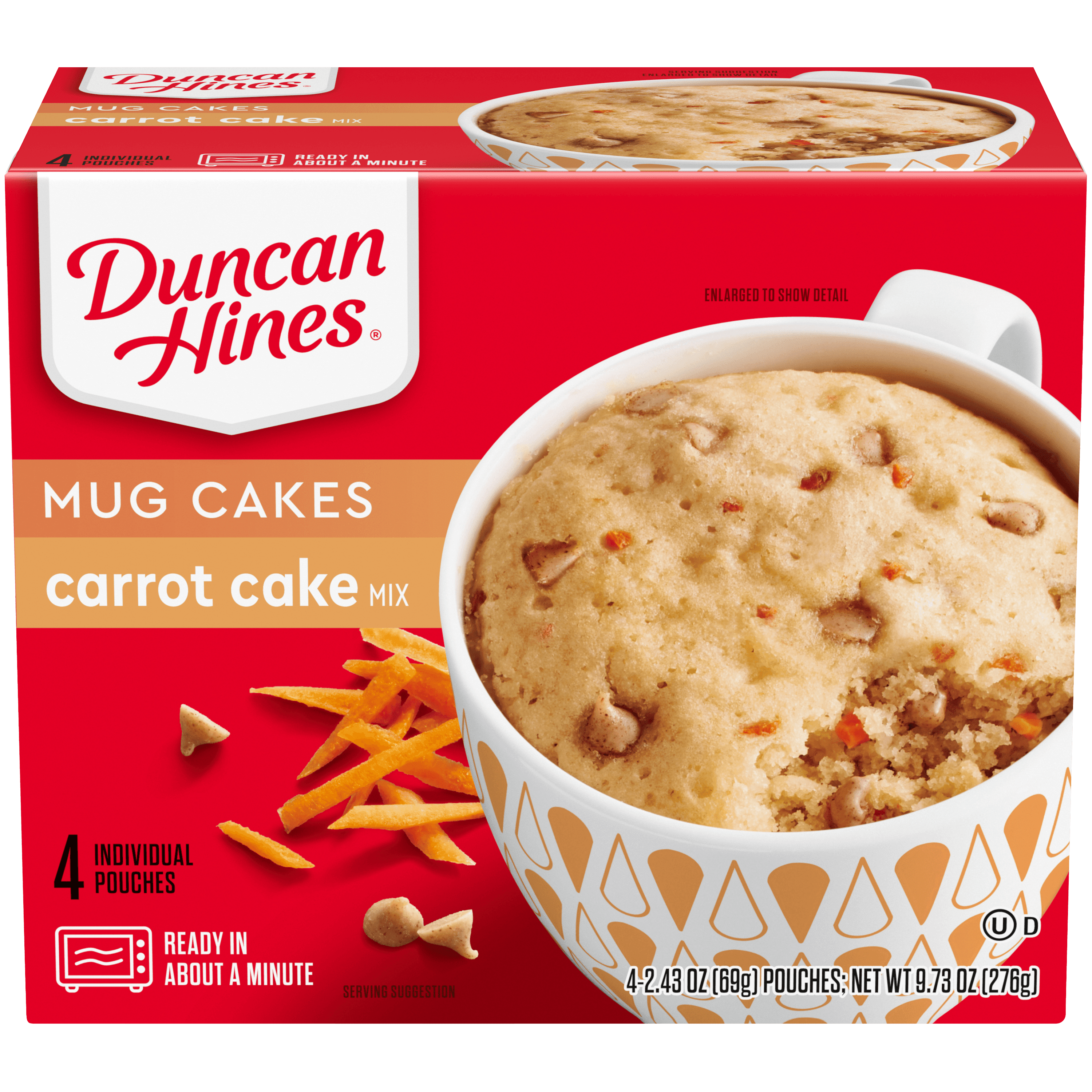 Duncan Hines Mug Cakes Carrot Cake Mix with Cream Cheese Frosting, 4 Pouches