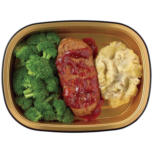 Meatloaf With Red Sauce (Meatloaf [Beef, Pork, Water, Bread Crumbs {Wheat Flour, Sugar, Yeast, Salt}, Seasoning {Encapsulated Salt (Salt, Palm Oil), Dehydrated Onion, Dehydrated Garlic, Romano Cheese (Pasteurized Cow's Milk, Cheese Culture, Salt, Enzymes), Sugar, Dehydrated Tomato, Dextrose, Canola Oil, Corn Starch, Deactivated Yeast, Flavorings, Dehydrated Beef Stock, Spices, Dehydrated Parsley, Maltodextrin, Cellulose Gum, Malic Acid}, Onion, Bell Pepper, Sodium Lactate & Sodium Acetate, Natural Flavor], Red Sauce [Water, Tomato Paste, Sugar, Vinegar, Salt, Cultured Sugar, Soybean Oil, Garlic, Onion, Spices, Xanthan Gum]), Seasoned Broccoli (Broccoli Florets, Olive Oil, Canola Oil, Salt, Black Pepper), Mashed Potatoes (Potatoes With Skin, Butter [Sweet Cream, Salt], Milk, Salt, Black Pepper, Spices, Garlic Powder).