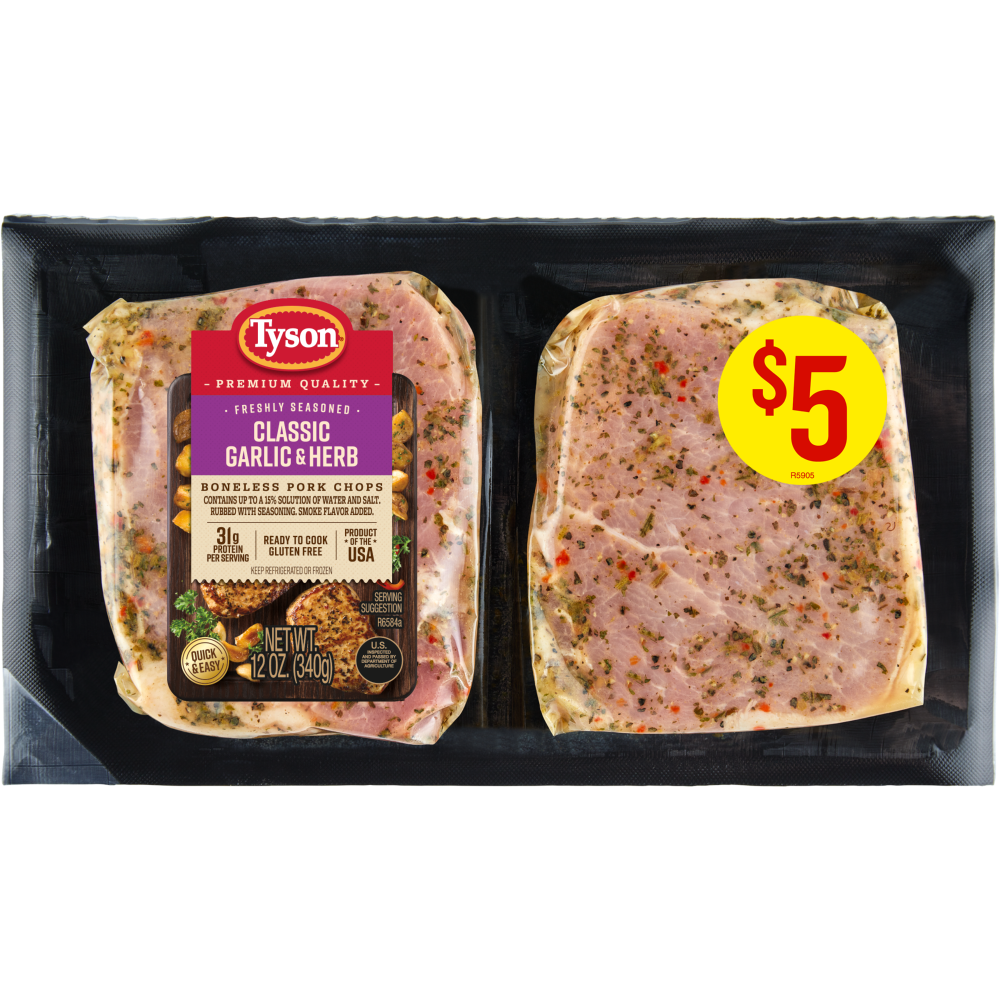 Tyson® Pork Chops Classic Garlic & Herb Freshly Seasoned Boneless Ready to Cook