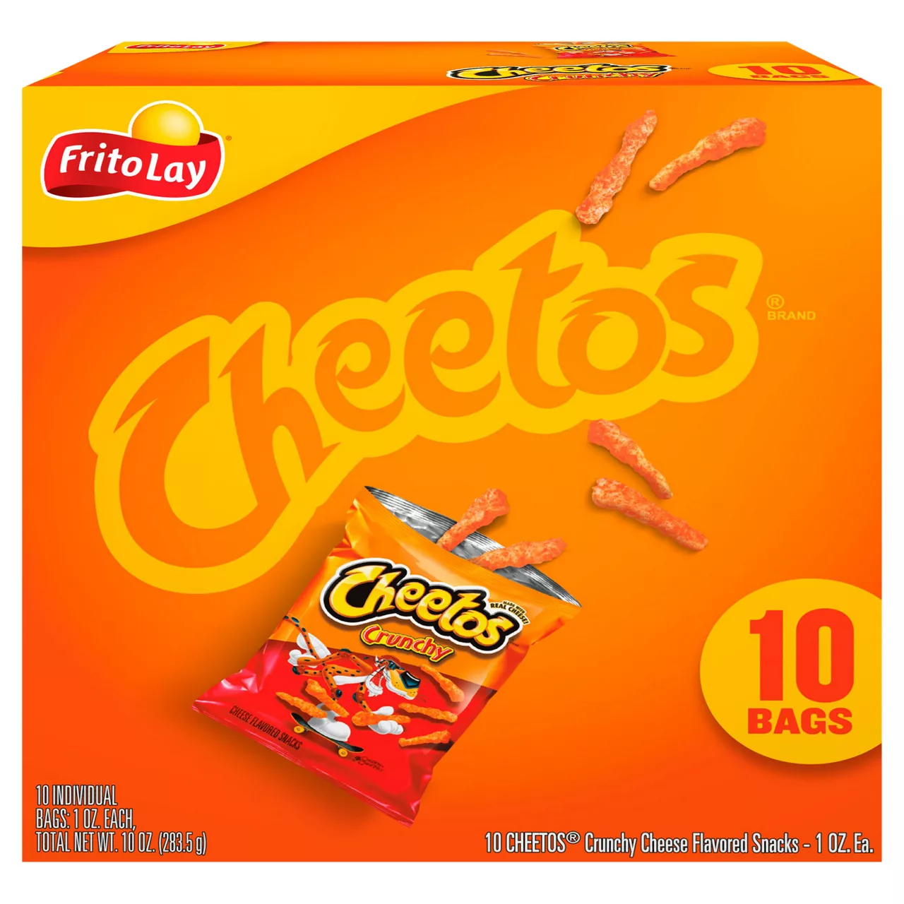 CHEETOS snacks are the much-loved cheesy treats that are fun for everyone! You just can't eat a CHEETOS snack without licking the "cheetle" off your fingertips. And wherever the CHEETOS brand and CHESTER CHEETAH go, cheesy smiles are sure to follow. Cheetos Crunchy Cheese Flavored Snacks are packed with bold, cheesy flavor in every bite. These iconic, crunchy puffs are coated with a deliciously tangy cheese seasoning, making them irresistibly addictive. Whether you're snacking at home, at a party,...