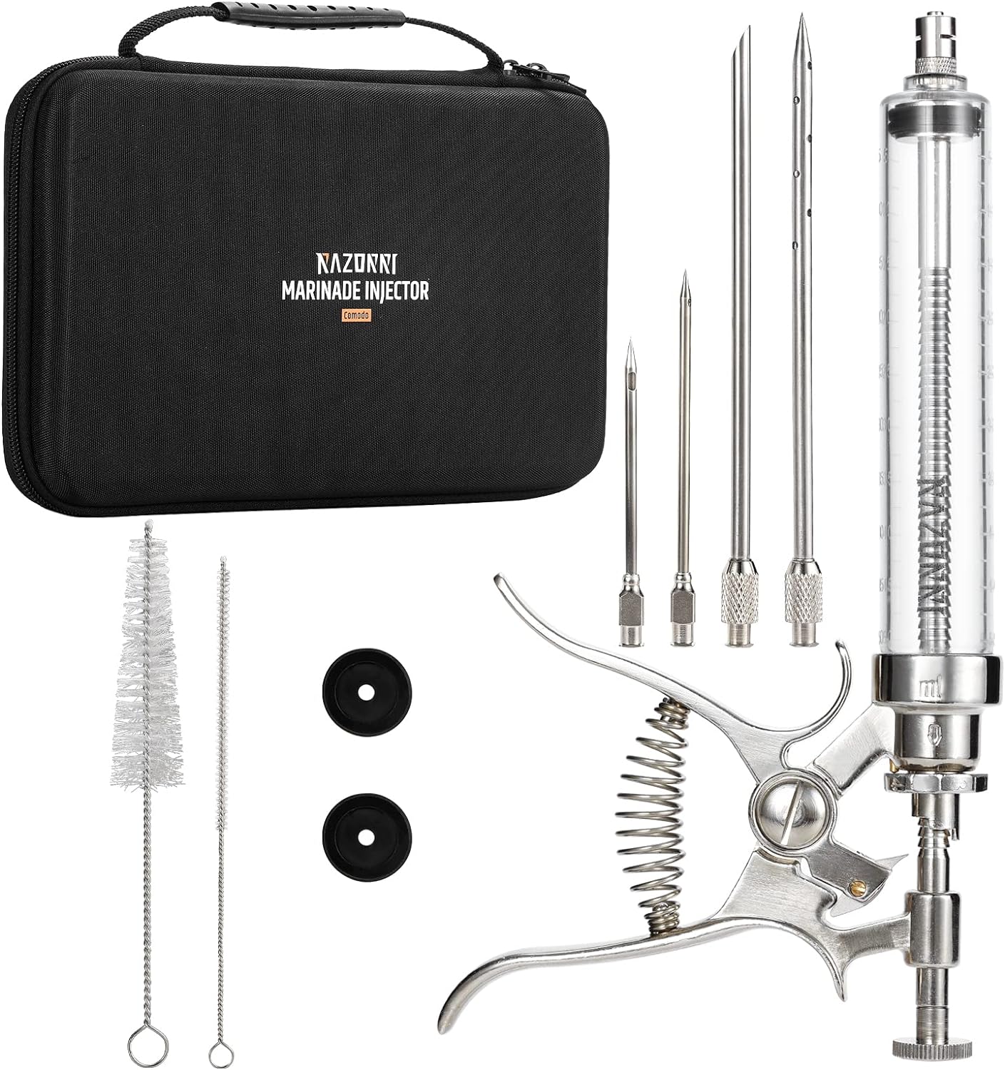 Add your favorite marinades, brines or other flavorings into meat or poultry with this Chefstyle flavor injector. Starting with the large handle that’s comfortable to pull and push at any angle and ending with the stainless-steel needle designed for thick or thin marinades, let this syringe’s flavor injecting power level up your cooking.