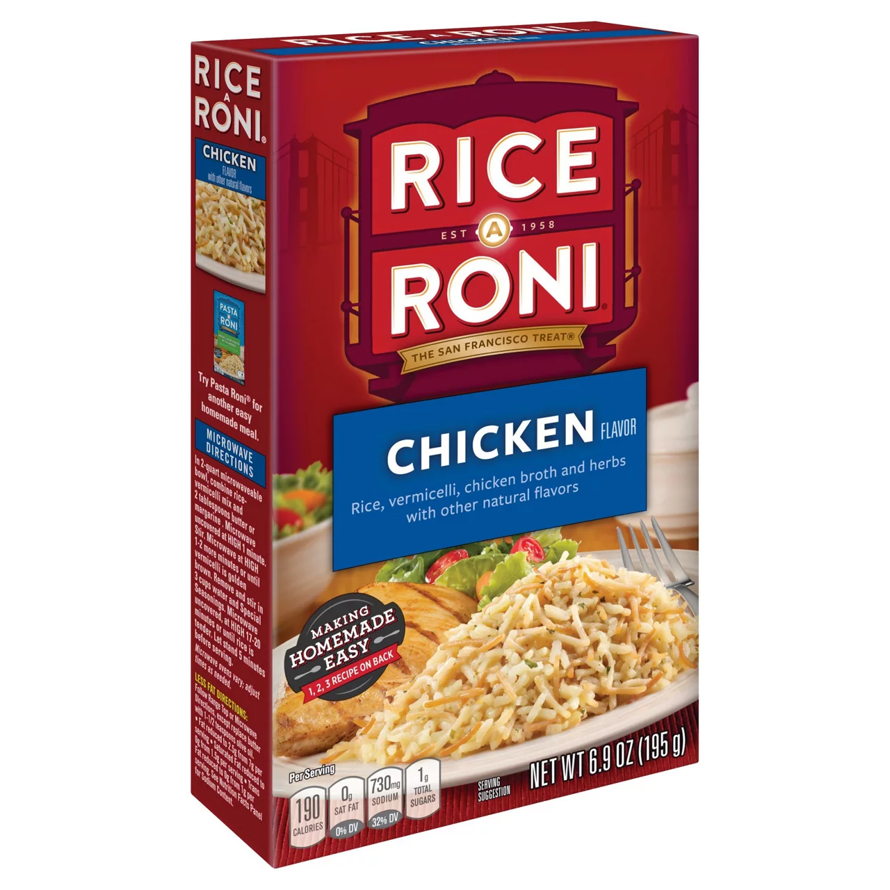 Rice, Wheat Flour, Maltodextrin, Salt, Natural Flavor (Contains Milk), Sugar, Autolyzed Yeast Extract, Canola Oil, Hydrolyzed Soy Protein, Onion Powder, Potassium Chloride, Monosodium Glutamate, Dried Chicken Broth, Chicken Fat, Dried Parsley, Niacinamide, Ferric Phosphate, Garlic Powder, Sunflower Oil, Turmeric (Color), Black Pepper Extract, Thiamine Mononitrate, Silicon Dioxide, Folic Acid, Disodium Guanylate, Disodium Inosinate, Riboflavin.