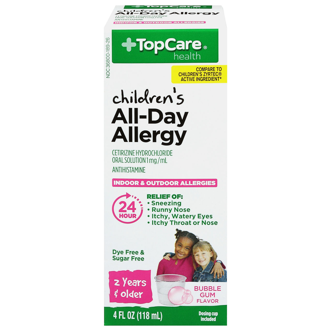 Children's Zyrtec Allergy Syrup relieves indoor and outdoor allergy symptoms in children. With 5 milligrams of the antihistamine cetirizine hydrochloride in each 5 mL, this over the counter children's allergy medicine offers 24 hour relief from common symptoms of hay fever, seasonal allergies, and other upper respiratory allergies. Children's Zyrtec provides consistently powerful relief for your kids' allergies and helps treat symptoms such as runny nose, sneezing, itchy watery eyes, and itchy nose...