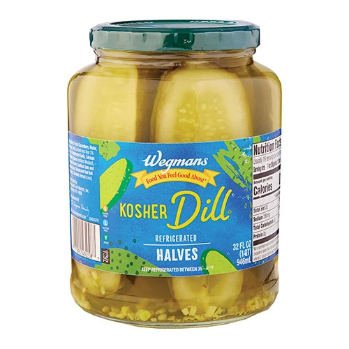 One 32 fl oz jar of Claussen Kosher Dill Pickle Halves Claussen pickle halves are crafted with fresh cucumbers picked straight from the vine Always refrigerated for freshness Pickled with a unique spice blend of turmeric, garlic, red pepper and more No MSG, artificial colors or yellow no. 5 Kosher Certified and Vegan Claussen pickles are a fat-free food for your picnic or barbecue Perfect side for burgers, hot dogs and sandwiches at lunch or dinner Enjoy as a delicious snack