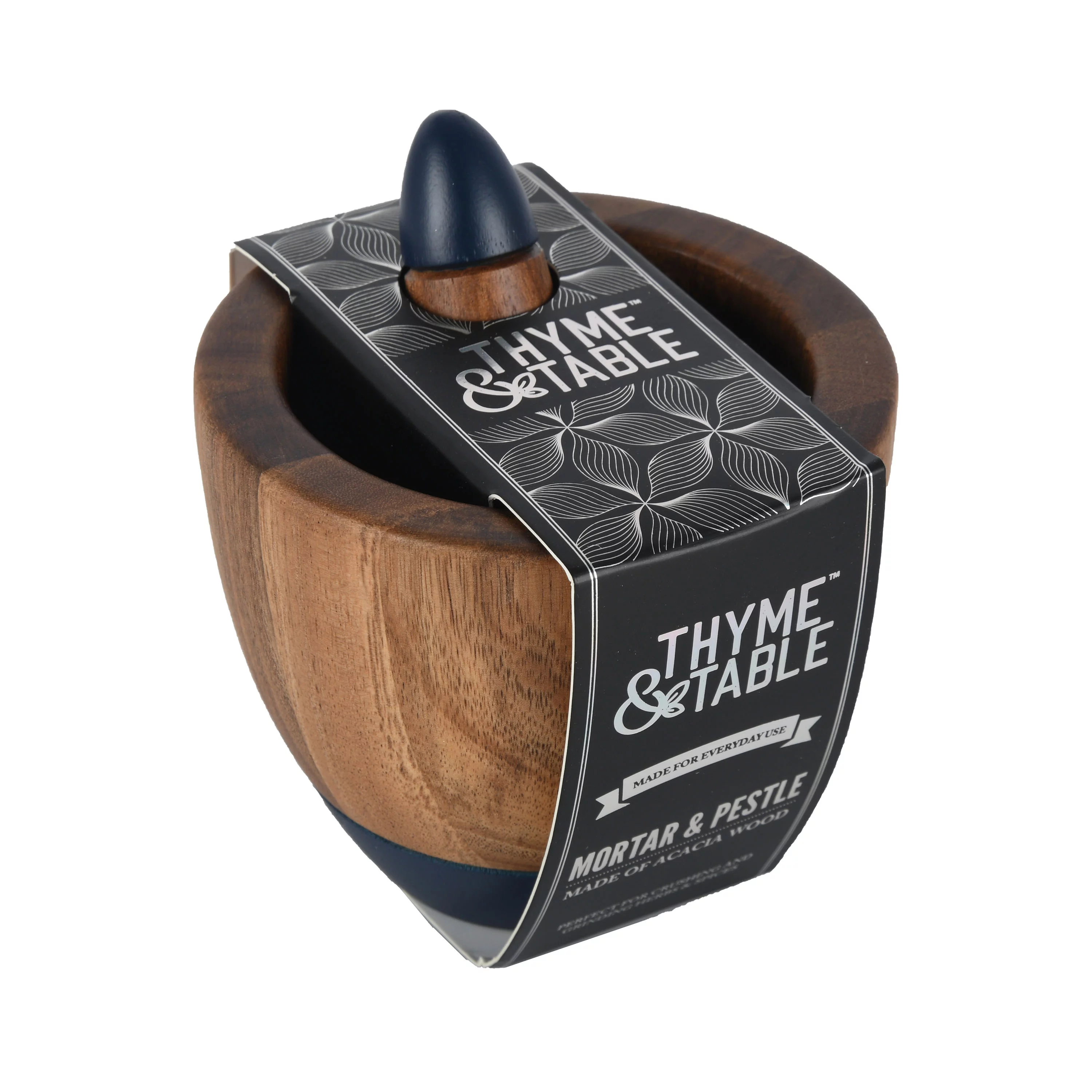 Thyme & Table Acacia Wood Mortar and Pestle, Navy