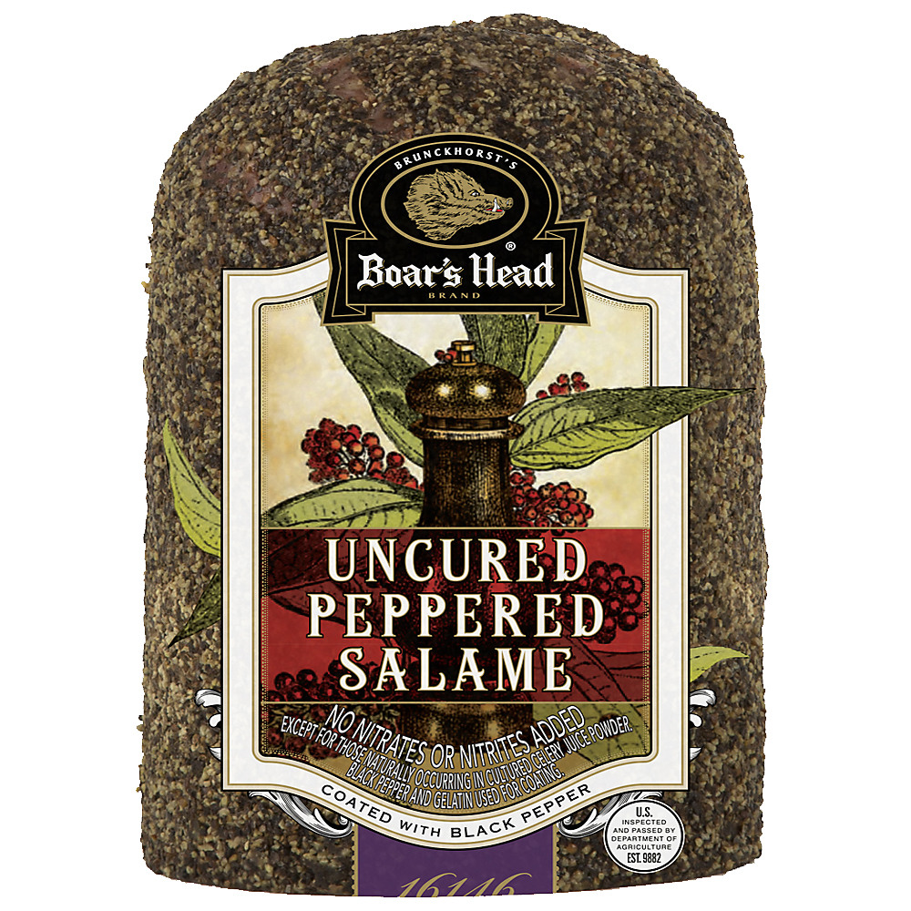 Bay Front & San AntonioIngredients: Pork, Salt, Nonfat Dry Milk, Sugar, Corn Syrup, Spices, Wine, Garlic Powder, Lactic Acid Starter Culture, Sodium Nitrite, Sodium Nitrate.Coated with Gelatin and Black Pepper.Contains: MilkIngredients: Pork, Salt, Contains 2% or less of Nonfat Dry Milk, Sugar, Corn Syrup Solids, Spices, Wine, Garlic Powder, Lactic Acid Starter Culture, Sodium Nitrite, Sodium Nitrate.Coated with Gelatin and Black Pepper.Contains: Milk.