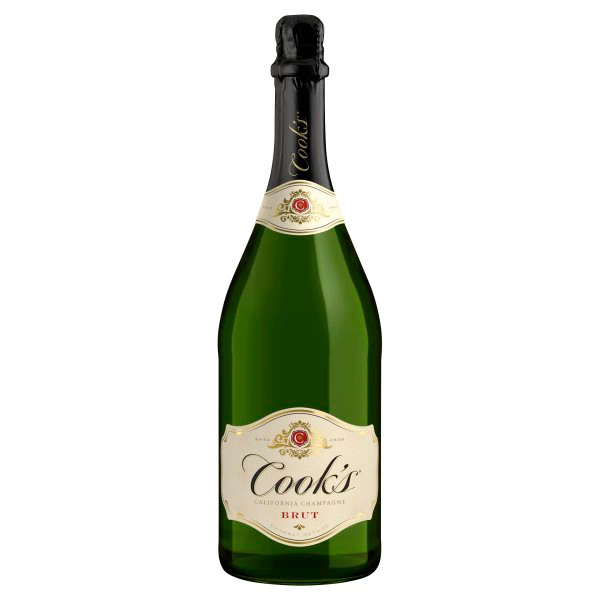 Cook's California Champagne Brut White Sparkling Wine, 1.5 L Bottle, 11.5% ABV One 1.5 L bottle of Cook's California Champagne Brut White Sparkling Wine, equal to two standard 750 mL bottles California wine with aromas and flavors of apple and pear balanced by toasty yeast notes and floral nuances Sparkling white wine that's a perfect champagne for mimosas and other brunch cocktails Fruity and fresh, medium-dry Prosecco-style sparkling wine Bubbles wine produced at the Mission Bell Winery in Madera, California White California wine perfect for Sunday brunch Large 1.5 L wine bottle perfect for sharing with friends Continuing a tradition of creating quality champagnes since 1859