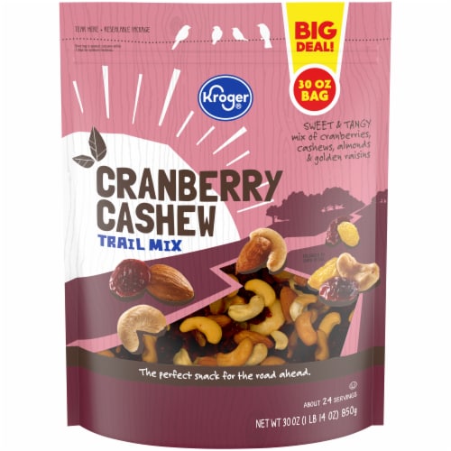 Dried cranberries (contains sugar, sunflower oil), Almonds, Cashews, Soybean and/ or peanut oil, Sea salt.