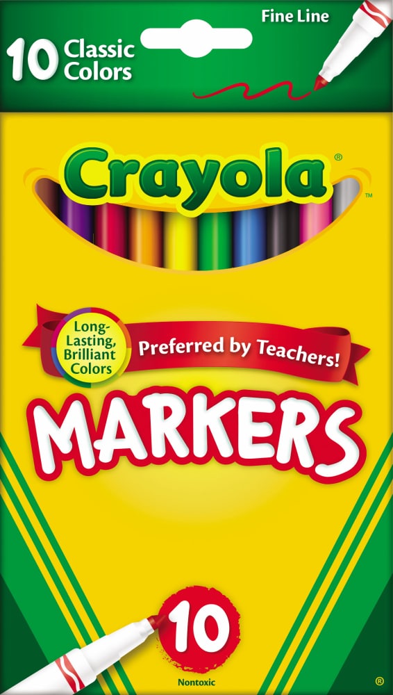 Kids love to get creative with color, but parents want to keep the color where it belongs and easily remove it where it doesn't! Ultra-Clean Markers have a special formula that washes easily from skin, most washable clothing and walls. This 10 count Washable Marker Set is an essential art supply for school projects, homework assignments, and everyday creative play. Pair it with a coloring book or colorful construction paper for a great gift idea. • Crayola Color Max: True, Vibrant Colors Classic...