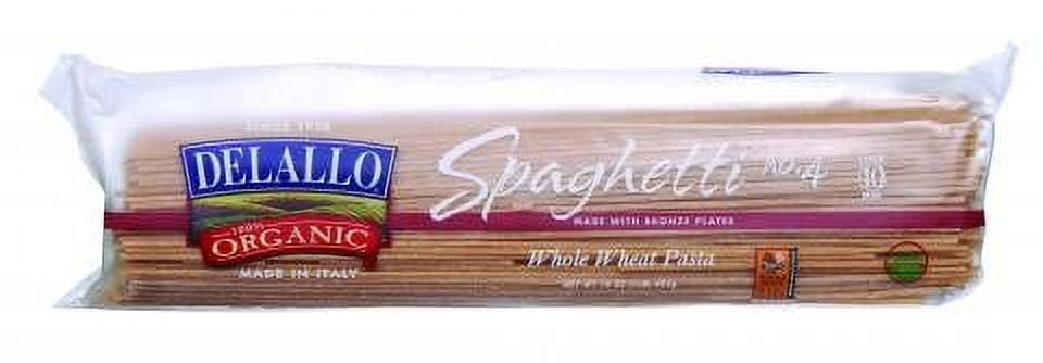 Delallo organic whole wheat spaghetti is an organic, whole grain, vegan 100% whole wheat pasta.It is long cut, and maybe the most well known pasta there is.Each cut of pasta is formed with artisanal bronze plates to impart a coarse, sauce-hugging texture.The pasta is then dried slowly at a low temperature to retain its fresh bread flavor and famous al dente bite.This pasta is certified organic by icea.Each bag contains 16 oz.Of pasta.See nutrition facts panel for allergens. country of origin : united...