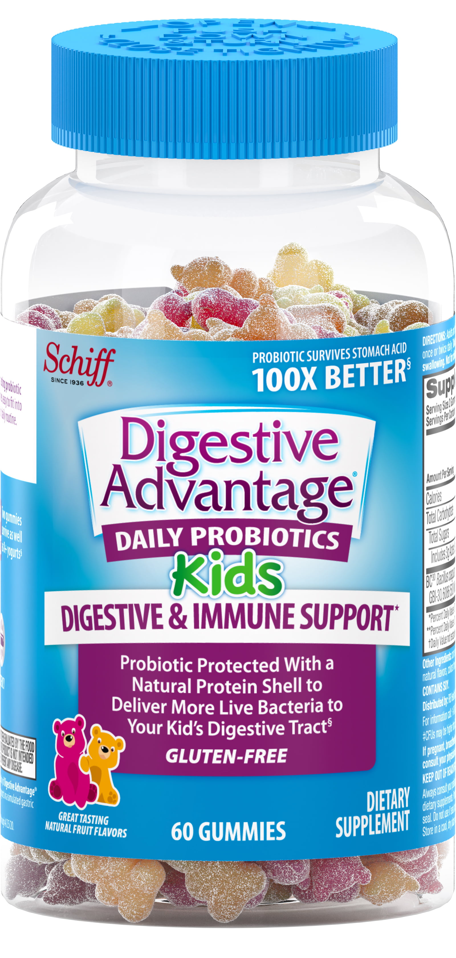 Daily Probiotic that supports everyday digestive and overall health Delicious natural fruit-flavored gummies with no artificial flavors Helps lessen minor abdominal discomfort, bloating, and may help relieve occasional diarrhea BC30, the probiotic in Digestive Advantage, survives stomach acid 100x better than leading probiotics and yogurts For Adults and Kids 3 years of age and older