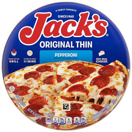 Enriched Wheat Flour (Wheat Flour, Niacin, Reduced Iron, Thiamine Mononitrate, Riboflavin, and Folic Acid), Water, Low-Moisture Part-Skim Mozzarella Cheese (Part-Skim Milk, Cheese Culture, Salt, Enzymes), Pepperoni Made with Pork, Chicken and Beef (Pork, Mechanically Separated Chicken, Beef, Salt, Contains 2% or Less of Spices, Dextrose, Pork Stock, Lactic Acid Starter Culture, Oleoresin of Paprika, Flavoring, Sodium Nitrite, Sodium Ascorbate, Paprika, Processed with Natural Smoke Flavor, BHA, BHT, Citric Acid to Help Protect Flavor), Tomato Paste, Vegetable Oil (Corn Oil and/or Soybean Oil and/or Canola Oil), 2% or Less of Palm Oil, Sugar, Salt, Yeast, Spices, Dried Garlic, Natural Flavor.