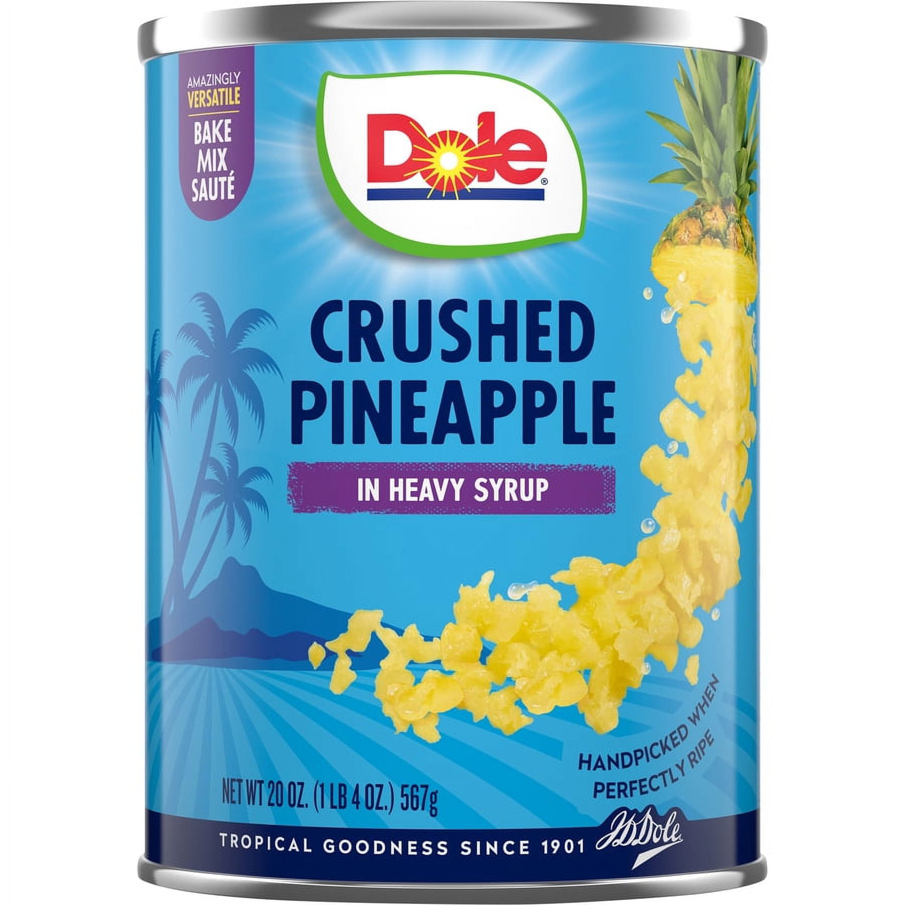 Juicy, finely crushed pineapple in heavy syrup! Dole Crushed Pineapple is packed in an easy-to-open can, keeping the finely crushed pineapple fresh and ready to be enjoyed at any time. Rich in Vitamin C, Dole Crushed Pineapple in Heavy Syrup is made with the nutritional goodness of real fruit, making it the ideal snack for breakfast, lunch, dinner, or anytime you're craving a sweet treat. Dole Crushed Pineapple is great by itself, as a topping, or in fruit salads, smoothies, or homemade desserts....