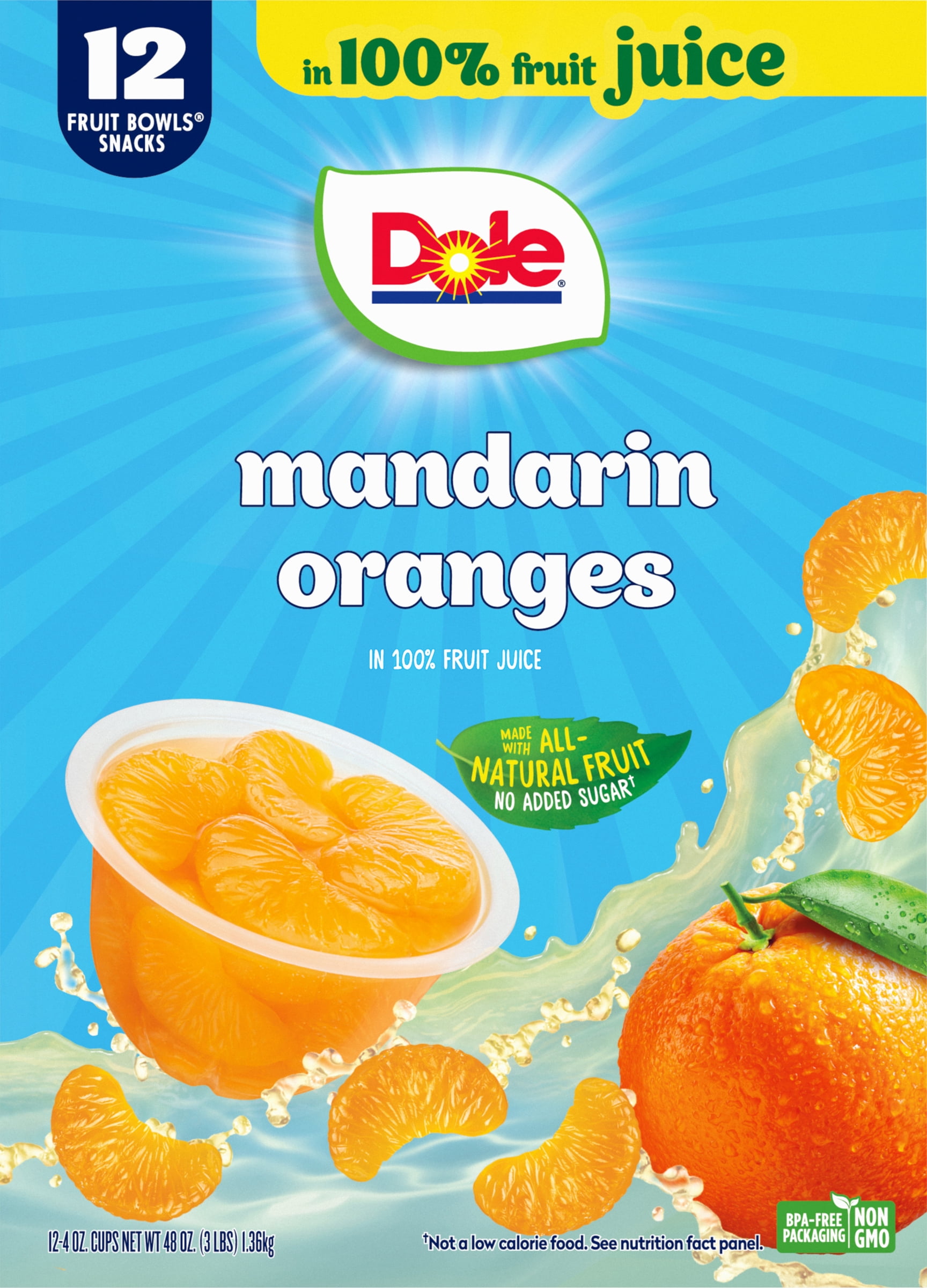 Juicy mandarin orange slices in 100% fruit juice! Dole Mandarin Oranges Fruit Bowls combine bite-sized mandarin orange slices with 100% fruit juice for a delightfully satisfying snack in a convenient bowl. Rich in Vitamin C, Dole Mandarin Oranges in 100% Fruit Juice Fruit Bowls are made with the nutritional goodness of real fruit, making them the ideal snack for breakfast, lunch, dinner, or any time you're craving a sweet treat. With Dole's shelf-stable products, you can have the delicious taste...