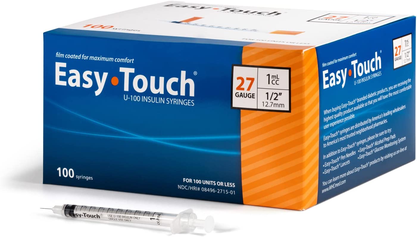 Sharp Needle Syringe For Comfortable Injection: EasyTouch diabetic needles are made with surgical steel, film-coated, tri-bevel cut, and electro-polished to remove burrs, creating one of the sharpest insulin needles on the market, per STR Labs. Easy-Flow Injection Syringe: Utilizing thin-wall cannulas, EasyTouch diabetic syringes feature a thinner wall that reduces the required plunger force and helps large insulin doses flow easily for a smoother, more comfortable injection. Better Barrels: EasyTouch insulin syringe barrels are lubricated, boldly marked, and have pronounced flanges to support a smooth and secure injection. Quality You Can Trust: EasyTouch syringes with needle are manufactured according to MHC Medical Products’ FDA 510K to allow for the control of each component and ingredient, from the insulin needles' grind to the barrel markings. Our Promise: MHC Medical Products stands behind its products with a simple promise: Quality you can trust and comfort you can feel; if you're not satisfied, let us know, and we'll make it right