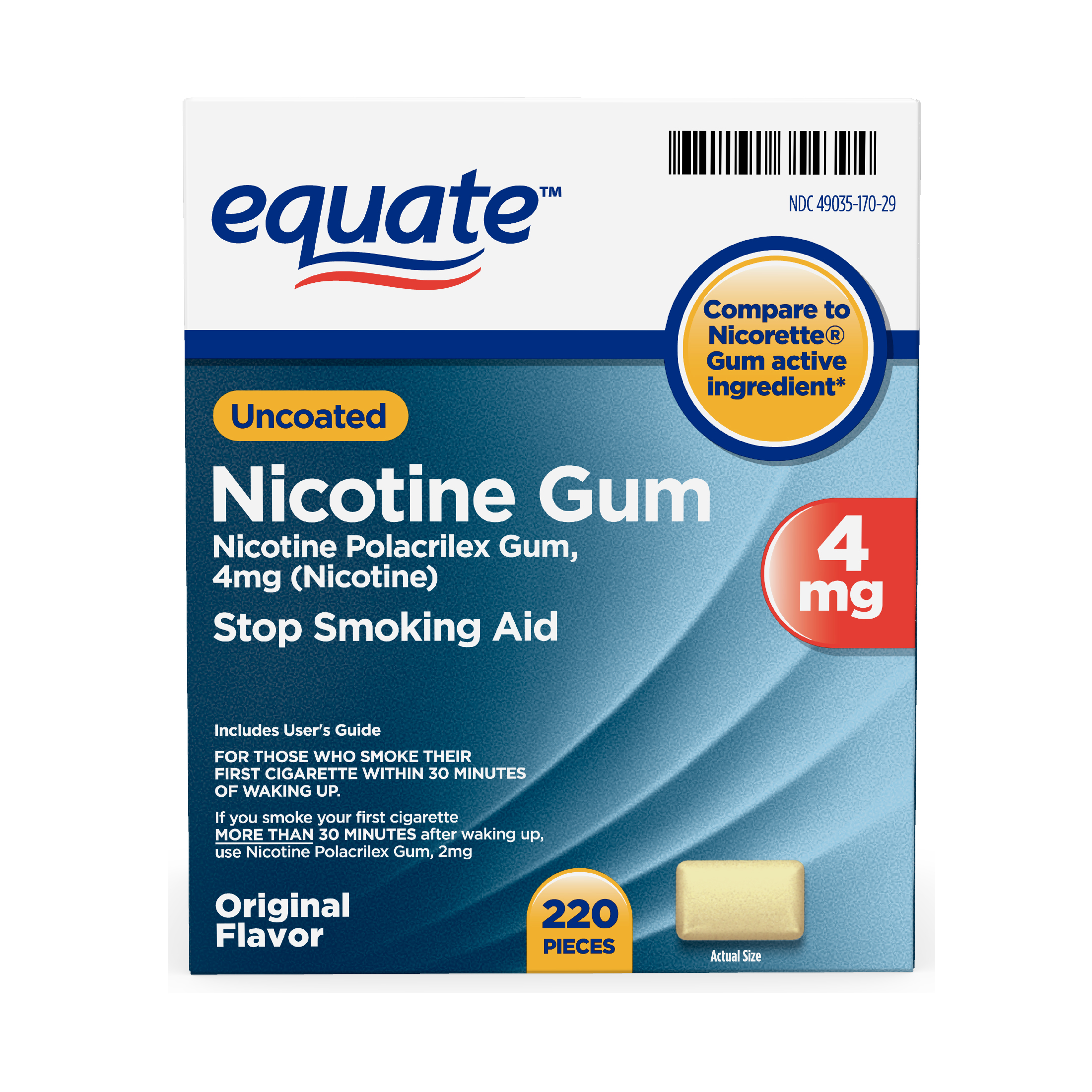 Active ingredient (in each chewing piece): Nicotine polacrilex (equal to 2 mg nicotine), stop smoking aid. Inactive ingredients: acesulfame potassium, calcium carbonate, carnauba wax, flavors, gelatin, gum base, mannitol, sodium bicarbonate, sodium carbonate anhydrous, sorbitol, talc, titanium dioxide, xylitol.