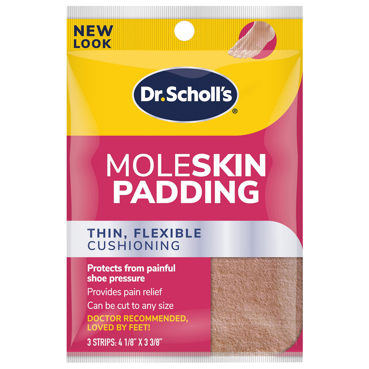 Put a little pep in your step with Equate Super Moleskin Padding Sheets. The extra thick and soft fabric protects tender areas from shoe friction, while the self-stick adhesive holds the fabric firmly in place all day. Each package comes with three trim-to-fit moleskin sheets. The soft, durable fabric protects sensitive areas, allowing you to move more freely and fight foot irritants like straps, heels and hard surfaces of shoes that have not yet been broken-in. Just wash and dry feet thoroughly,...