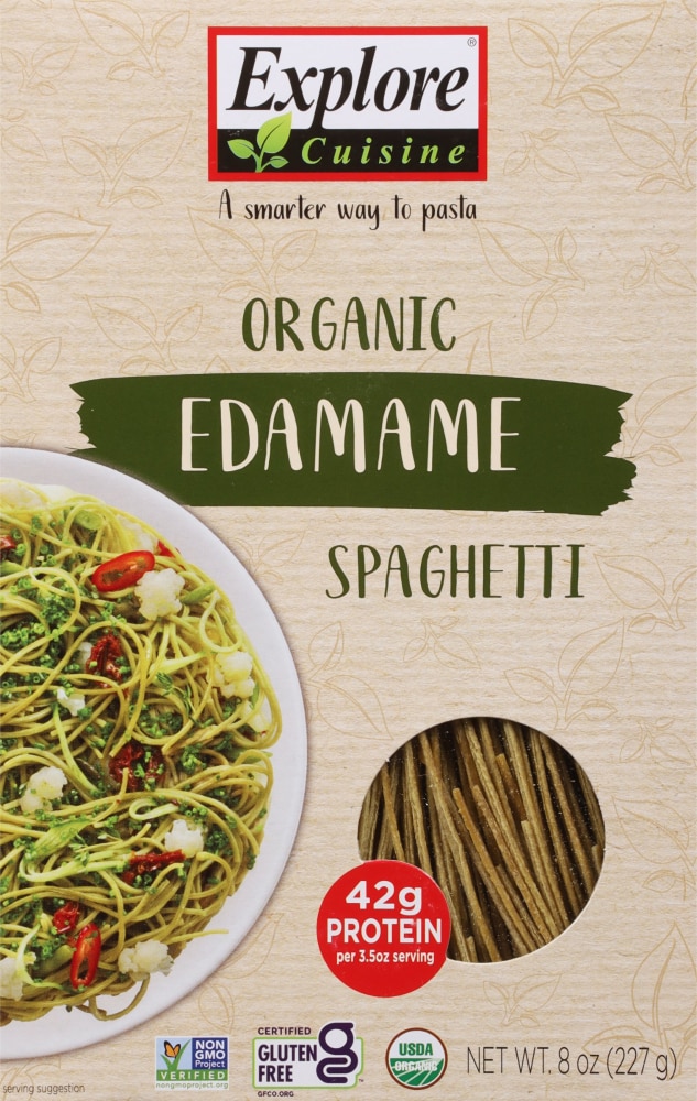PLANT PROTEIN. MADE SIMPLE. - Explore Cuisine is easy-to-make food that’s good and good for you. It’s high protein. High fiber. And it’s organic. We know that simple changes can make a big impact.. CLEAN, SIMPLE INGREDIENTS - All Explore Cuisine pastas are USDA Certified Organic, non-GMO, gluten free, vegan & kosher. Never any added flavorings, binders or gums.. SUPER TASTY NUTRITION - Our Organic Edamame Spaghetti is nutrient dense & low in carbohydrates compared to traditional pasta. Plus, each 2-oz serving contains 24g of protein and 13g of fiber.. EASY TO MAKE - These gluten-free noodles cook just like traditional pasta and are ready in minutes. Making a quick, tasty meal for the entire family has never been so simple!