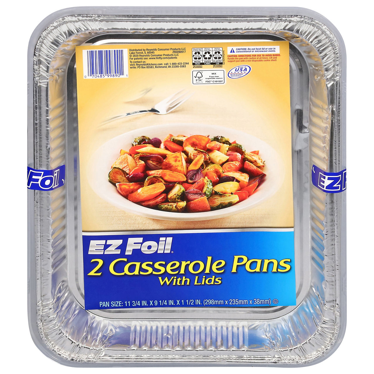 EZ Foil Casserole Pans, with Lids, 11.75 Inch x 9.25 Inch